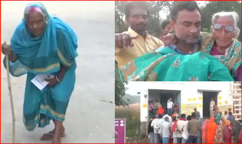 Bihar Chunav 2025: पोलिंग बूध पर बुजुर्ग महिला को गोद में ले...