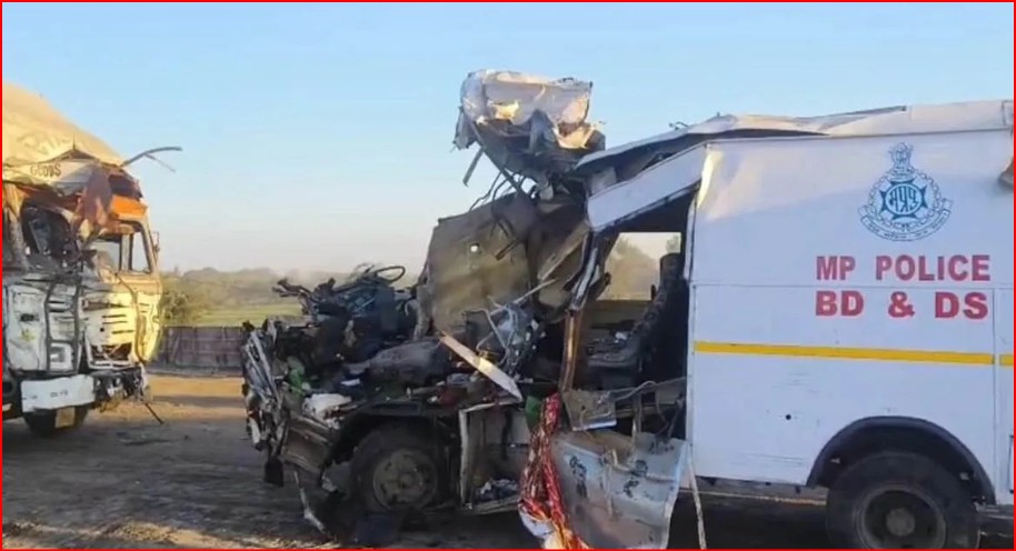 मध्य प्रदेश: सागर में बम निरोधक दस्ता का वाहन ट्रक से भिड़ा,...
